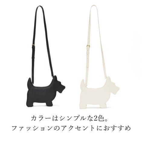 ドッグ型ショルダーバッグスコティッシュ・テリア型の愛らしいショルダーバッグ。コーディネートのアクセントに。