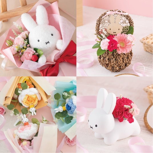ミッフィーのお花屋さん「フラワーミッフィー」にて、母の日にぴったりのフラワーギフトを販売中!生花のプランターフラワーアレンジメントや人気のぬいぐるみブーケなどが登場