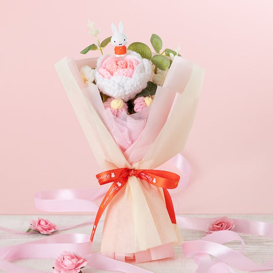 フラワーミッフィーでは、人気の「着せかえほわほわぬいぐるみ」がセットになったブーケや手軽にお花を楽しめるプランターカバーのセットなど、母の日の贈り物にぴったりなカーネーションやスプレーバラを使用したフラワーギフト各種をご用意しました。生花はもちろんお手入れ不要のアートフラワーやニットフラワーを使用したギフトも生活スタイルやお好みに合わせて選択可能です。プランターやコースターをアフターユースできるアレンジメントは、お花を楽しんだあとも引き続きミッフィーのいるくらしをお楽しみいただけます。