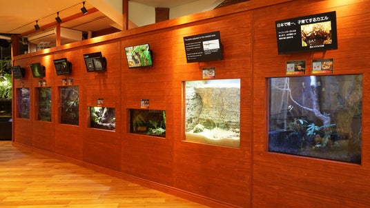 ※クロイワトカゲモドキ、ヤエヤマハラブチガエル、アイフィンガーガエル、アマノヤマタカマイマイ、オオアガリマイマイ、ヘソアキアツマイマイは当館で繫殖に成功した個体を展示しています。