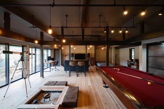 美しい田園風景が広がる綾部市の、人里離れた山中にたたずむ古民家をスタイリッシュに改装した一棟貸しの宿。100平米もの広々とした敷地にビリヤードや露天風呂を備える。目の前には清流が流れ、川のせせらぎを感じられる癒しの空間となっています。