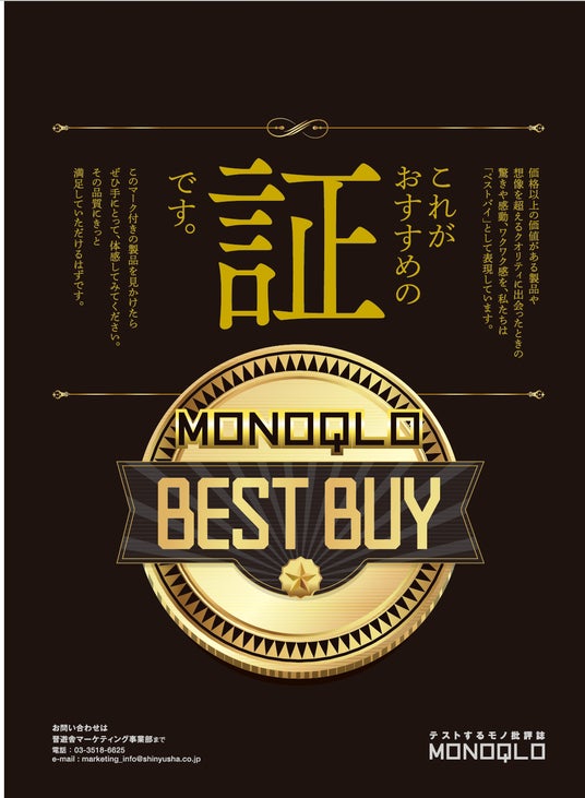 "使う人目線"の厳しいテストの結果、編集部が "本当におすすめできる" と認めた製品に認証マークを付与しています。いくらお金を積んでも手に入らないこのマークは、受賞企業様の商品販促としてご活用いただいています。