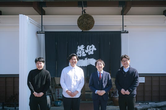 左から、Beer the First取締役:山川大介、株式会社Beer the First 代表取締役:坂本錦一、株式会社グリーンハウスフーズ新業態商品マーケティング部:八幡幸洋、世嬉の一酒造 代表取締役社長:佐藤 航(四代目)
