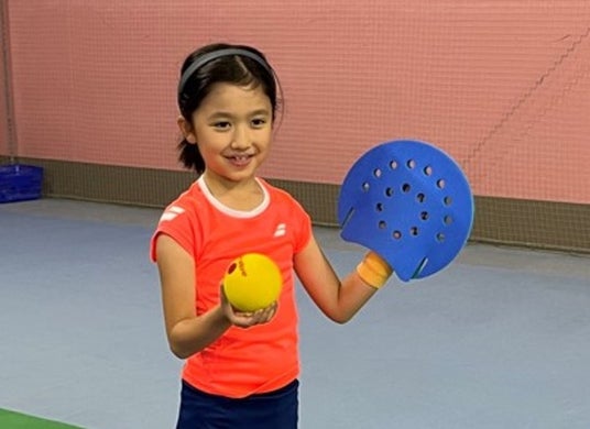 「テニピン」はテニスの動きをベースにした新しいラケットスポーツで、柔らかいボールとハンドラケットを使うため使うため、年齢や運動経験に関係なく誰でも楽しめるのが特長です。競技性より"楽しさ"を重視し、子どもたちの「やってみたい!」という気持ちを引き出すことを目的としています。