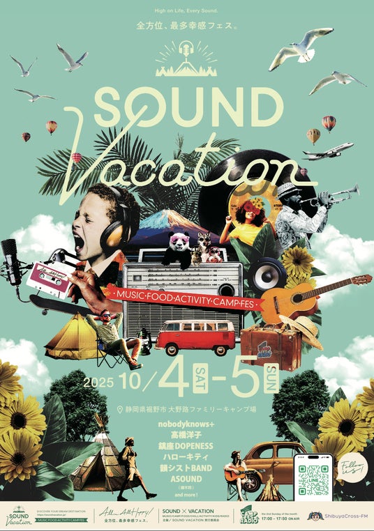 この秋、富士山の麓で新しいフェスが誕生、最多幸感フェスSOUND VACATION、まるでリゾートですごす休日のようでもあり全力で遊べるテーマパークのようでもある。これはちょっとあたらしいフェス体験。