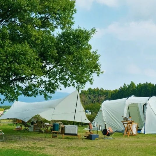 標高約600mの高原地帯にあるため、空気は澄みわたり、夜には満天の星空が広がります。広々とした芝生サイトに車を横付けできるオートキャンプ、宿泊施設も充実しており、初心者でも安心してキャンプを楽しめる環境が整っています。