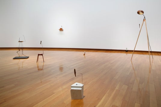 本展は石の支持体と銅・真鍮・鉄などの腐食性の金属から構成される。