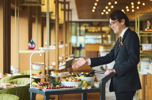 "豪華列車の食堂車"がコンセプトのオールデイダイニング。シェフが厳選した日本各地の食材と世界の素材を、フレンチと和の技法で調理。チョイスメニューを組み合わせられるビュッフェスタイルで、品数は60種類以上を取り揃えます。食堂車の雰囲気を盛り上げるワゴンサービスなど"食"を楽しむ演出も。グルマン(美食家・食いしん坊)や旅人たちの様々な食のシーンを満たします。