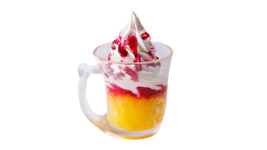 北海道ソフトクリームと果肉入りの氷、ソースの相性がよく合うこの時期しか食べられないびっくりドンキー流のデザートをぜひご賞味ください。