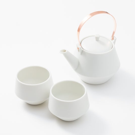 Frustum(フルスタム)茶器セット:創業150年の美濃焼の窯元が、現代の暮らしに合わせてデザインをリモデルした茶器シリーズ。世界3大デザイン賞のひとつを受賞した、土瓶&煎茶椀の3点セット。