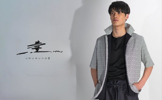 「産土」の本質である「土着(土地固有)」は、地域性が高い日本の"らしさ"を物語るうえで欠かせないと言って過言ではありません。日本の服をつくるなら土着素材は必須でした。そこで、まずは私たちの足元、熊本から「井寺古墳」の直弧文や肥後木綿、藍染といった土着素材を使いました。今後も熊本や九州を中心に、さらに幅を広げて日本各地の土着素材を取り入れていきます。