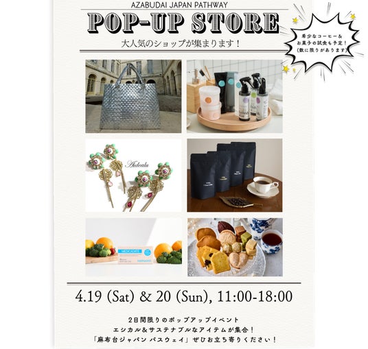 新しい価値観と未来を選ぶ、2日間限定のポップアップショップ!創造的なクリエイターが集まり、環境に配慮したアイテムや想いの詰まったプロダクトを販売します。あなたも一緒に楽しみませんか?希少なコーヒーやお菓子の試飲・試食も予定しています!(数量に限りがあります)