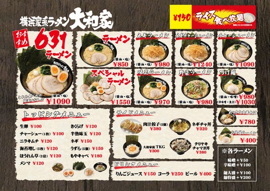 - 対象店舗:横浜家系ラーメン 半田大和家