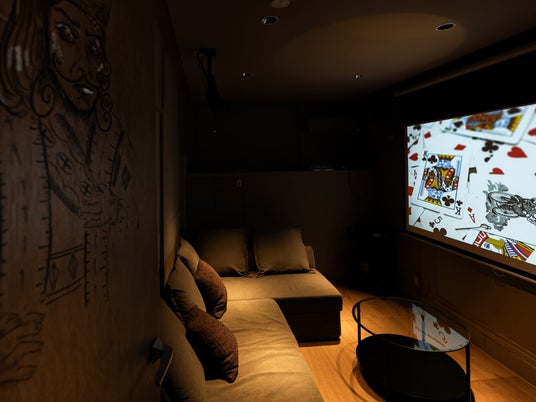 コンセプトでもあるゲームルームに設置している大型プロジェクターで映画の視聴も可能です。