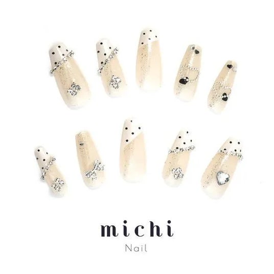 繊細なドットやシルバーアクセントが、指先に洗練された華やかさをプラスします。