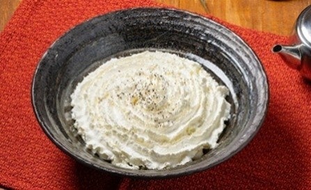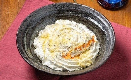白いクリームが特徴。クリームの下はチーズ、明太子などが隠れており、混ぜて食べると美味しい。だしを加えて味の変化が楽しめる。