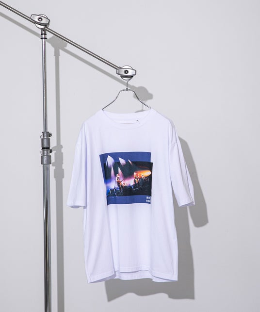 ライブ開幕の1枚をバックにプリントしたエクスクルーシブなフォトTシャツ。ユニセックスで着用いただけるアイテムです。
