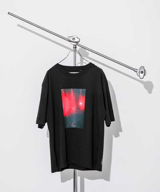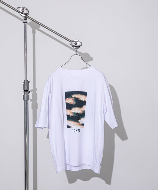 センシュアルなライブフォトをプリント。ライブフォトとTOKYOのロゴがインパクトを与える無地Tシャツ。