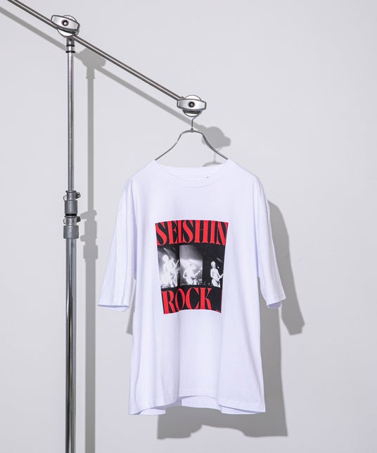 ドラマーのしおんをメインに作成したプリントが目を惹く半袖Tシャツ。