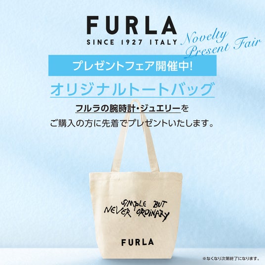 時計販売店/フルラウォッチ&ジュエリーウェブサイトにてFURLA(フルラ)の腕時計・ジュエリーをご購入いただいた方に先着でオリジナルトートバッグをプレゼントいたします。