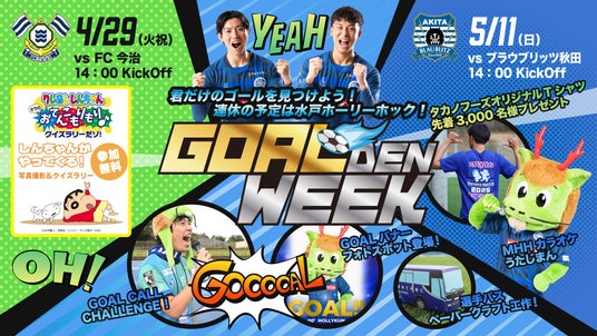 4月29日(火・祝)、5月11日(日)の水戸ホーリーホックホームゲームのイベントテーマは『GOALDEN WEEK』!