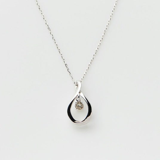 ダイヤが揺れて光をキラキラ反射するダンシングストーンのK10ホワイトゴールドペンダント。シンプルなしずく形のデザインでどんな装いにもお使いいただけます。石が引き立つ新型のダンシングストーンペンダントです。
