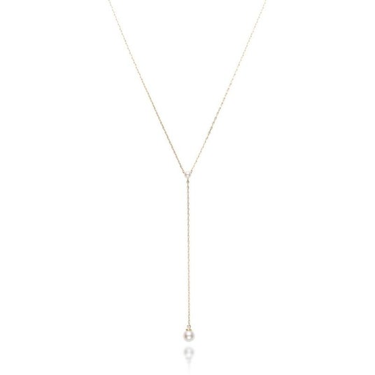 ベビーパールを使用した、Y字ネックレスのご紹介です。Y字ネックレスは、首元を美しく見せてくれると言われています。どの角度からでもたおやかに光るベビーパールをお試しください。
