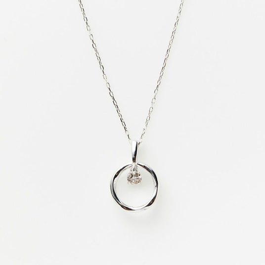 揺れるダイヤに目を奪われるダンシングストーンのK10ホワイトゴールドペンダント。シンプルな円形のデザインはどんな装いともマッチします。石が引き立つ新型のダンシングストーンペンダントです。
