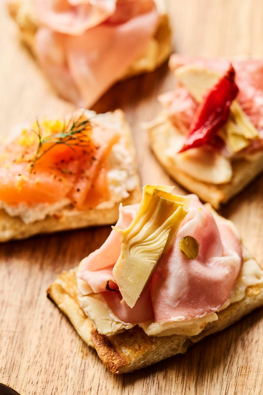サラミ、ブリーチーズ、アーティチョーク、オイル漬けドライトマト