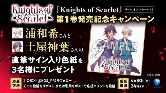 『Knights of Scarlet』公式Xアカウントのキャンペーン投稿をリポストまたは引用リポストで応援コメントを投稿した方の中から、3名様に浦和希さんと土屋神葉さんの直筆サイン入り色紙をプレゼント。