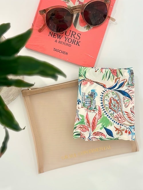 オープンを記念し、税込55,000円以上お買い上げのお客さまに、オリジナルのメッシュポーチとリゾートプリント柄バンダナのノベルティプレゼントを実施します。