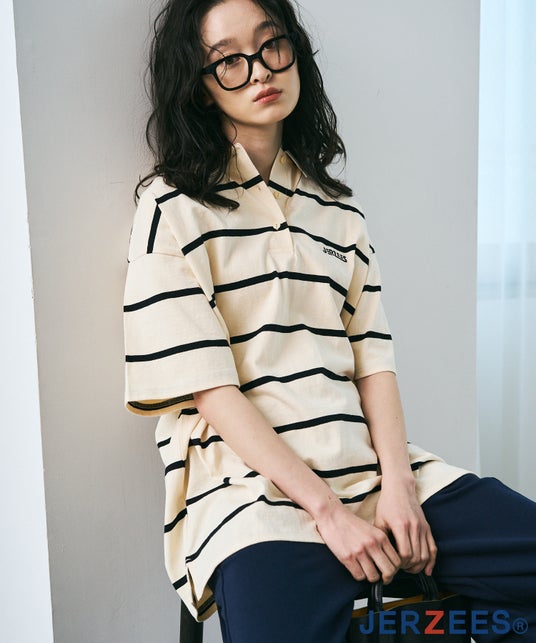 細ピッチのボーダーが新鮮なゆったりラガーシャツ