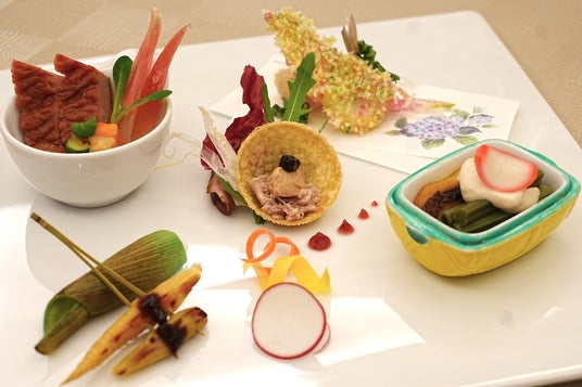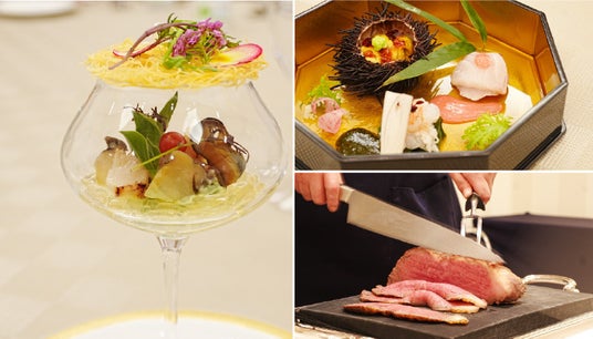 西洋・日本・中国、3つの料理の匠が結集し、唯一無二のコース料理をご用意いたしました。初夏への移ろいを味覚で感じられるよう、蕨や姫竹などの旬の恵みを繊細に織り込んだ一皿や、三陸の地魚を身からアラまで余すことなく使用した魚料理など、食材への敬意を込めて構成。メインには、いわて牛が食す干し草をパイ生地に練り込み、香ばしく包み焼きに。私たちは地域の豊かな食材に真摯に向き合い、確かな技術でその魅力を最大限に引き出す、食のリーダーであり続けたいと願っております。五感で味わう岩手の季節をどうぞご堪能ください。