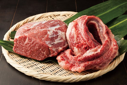 あばら骨まわりの肉で牛肉の「カルビ」に近い部位。赤身肉とたっぷりの脂が層を成しているので、サッと熱を加えることで脂がとろけ、コク深い味わいに。