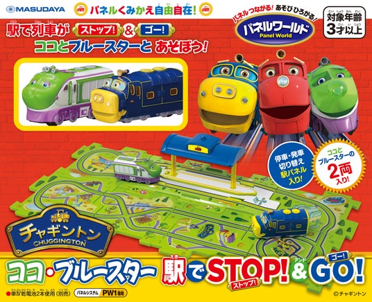 「チャギントン」は世界で人気の子供向け鉄道CGアニメ。物語の舞台はカラフルでたくさんのスマイルがあふれる個性豊かな列車たちが暮らす"チャギントン"という街。主人公は、元気いっぱいな"ウィルソン"、力持ちの"ブルースター"、ちょっぴりおてんばな"ココ"という見習い列車3人組で、この3人がチャギントンの街で先輩列車に導かれながら様々な経験を積んでともに成長してゆく冒険と友情の物語です。