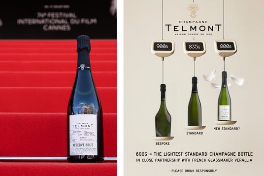 第78回カンヌ国際映画祭の公式パートナーであるテルモンが重量わずか800g、シャンパーニュのスタンダードを再定義する初の革新的な軽量シャンパーニュボトルを「プレミア」として開封