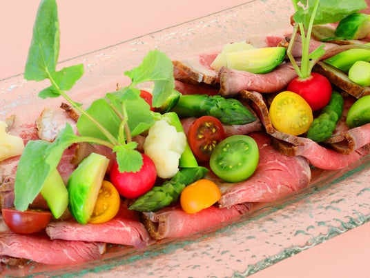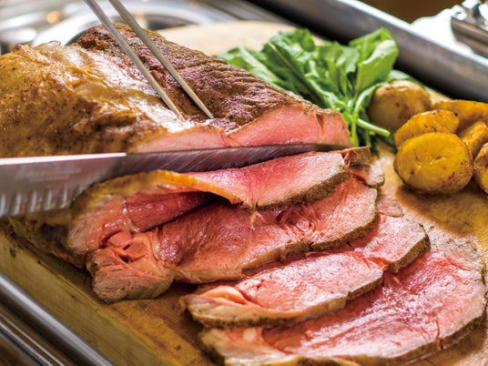 脂質の少ない赤身肉を低温調理でやわらかく仕上げたローストビーフ。