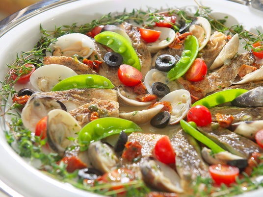 スズキのソテーとアサリのアクアパッツァ仕立て