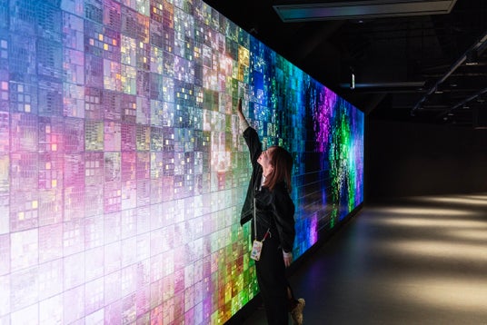 「群蝶共舞」では、来場者がパネルに触れると何百匹もの蝶が舞い踊る。来場者は一緒に「チップ」モザイクを消し、未来の劇場の序幕を開ける。「ハートビートスマートブレスレット」は、来場者の「心拍曲線」を記録し、さまざまな心拍曲線に基づいて最適な観光プランを推奨し、来場体験を日常生活にまで広げる。