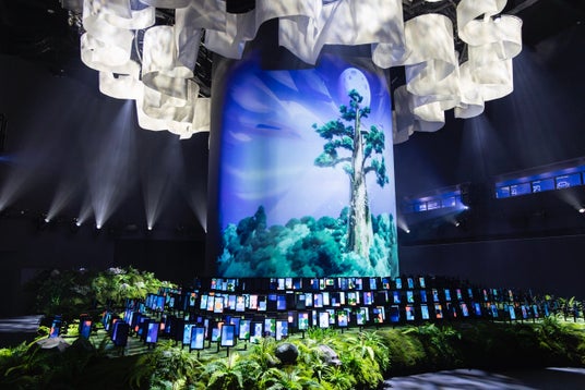 最先端の統合パフォーマンステクノロジーを使用して、560 本のロボットアーム、クロームブック、高さ 8 メートルのツリー プラットフォームとともにパフォーマンスを行い、特殊な生態環境における生命の多様性、寛容性、回復力を表現している。