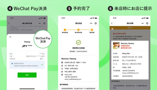 今回の食べログウィーチャットミニプログラムの提供により、中国からの訪日客はウィーチャット上で食べログの情報にアクセスし、地図検索、店舗写真、営業時間、レビューなどの豊富な飲食店情報を中国語UIで確認しながら、予約までスムーズに行えるようになります。これにより、訪日前の飲食店選びから旅行中の外食体験までの行動をウィーチャット内で完結できるようになりました。また、飲食店にとっても、訪日客との新たな接点になることで、集客機会の拡大が期待されます。