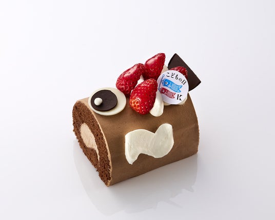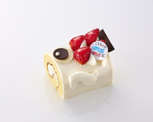 フレッシュな生クリームをふわふわのスポンジで包み込み、真っ赤ないちごと生クリーム、チョコレートでこいのぼりを描いた、可愛らしいロールケーキです。