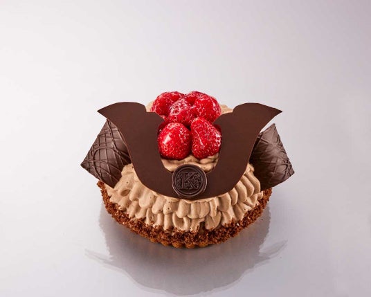 香ばしいタルト生地にのせ、生チョコクリームでデコレーションし、苺とかぶと型のチョコレートで飾りました。