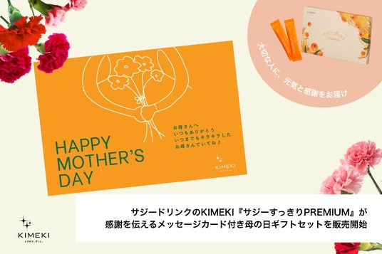 株式会社京福堂(本社所在地:大阪府大阪市 代表取締役社長 関 崇樹)が提供している10種の美容素材と鉄分を配合したパウダー飲料KIMEKIの『サジーすっきりPREMIUM』より、母の日限定ギフトセットが登場。2025年4月23日(水)から2025年5月18日(日)にかけて、楽天市場にて販売いたします。