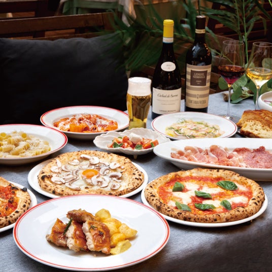 コース料理に加えて、本格窯焼きピッツァとパスタが食べ放題。