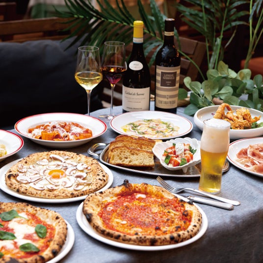 厳選ワイン10種以上が揃う全50種以上の飲み放題+食べ放題の本格ピザとパスタ+コース料理の満足感アリなルーフトップテラスビアガーデンです。