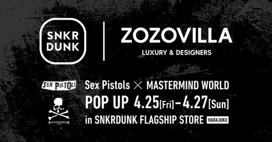 「SNKRDUNK(スニーカーダンク)」を運営する株式会社SODA(本社:東京都渋谷区、代表取締役CEO:内山 雄太)は、株式会社ZOZO(本社:千葉県千葉市、代表取締役社長:澤田 宏太郎)が運営するZOZOVILLA(ゾゾヴィラ)が展開する、パンク・ロックバンド「Sex Pistols(セックス・ピストルズ)」とファッションブランド「MASTERMIND WORLD」のコラボレーションアイテムのポップアップストアを2025年4月25日(金)~4月27日(日)の期間、スニダン FLAGSHIP STORE(HARAJUKU)で開催いたします。