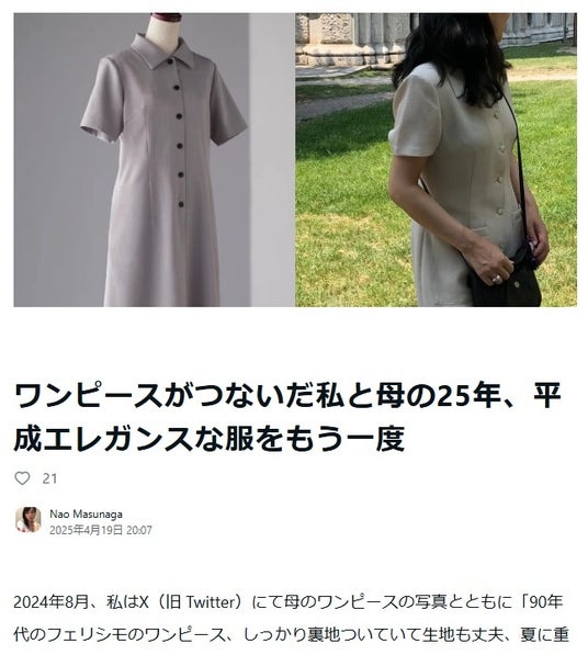 「母から子へ」受け継がれた平成初期のワンピースが令和に復刻。SNS投稿をきっかけに25年の時を超えて、フェリシモから再び登場。