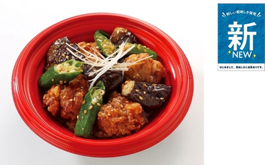 ナスとオクラの唐揚げ丼(ごまニンニクだれ)