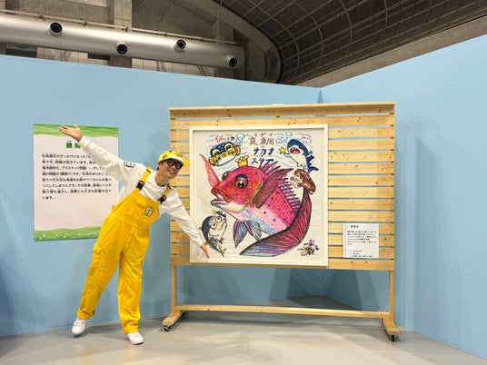 さかなクン 全部でギョざいます!全部が感動ですね。番組の中で描かせてもらった絵もたくさんあり、剥製の標本ちゃんもたくさんあり、様々な協力者のもと素晴らしい展示会になっていると思います。